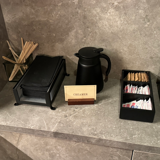 FOOD & DRINK -- Not DoorDash friendly. There are drinks served in the lobby, but thats all the convenience you get with this one when it comes to nourishment.