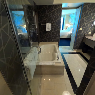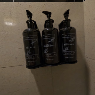 The shower experience was a stark contrast to the EPIC soaking tub, especially since the water takes so long to heat. FWIW the water pressure was redeeming & bath products are provided👌.