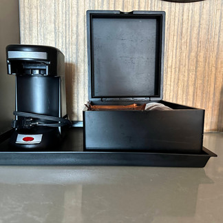 The rooms have your typical mini coffee bar & a medium mini fridge.