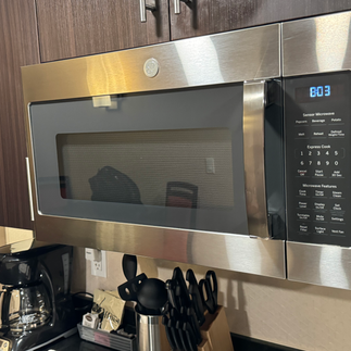 FOOD & DRINK -- 👍 good DoorDash contactless delivery is a no-go but there's a full kitchenette with all the things!